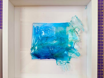 Fused glass puddle turtle on fused glass & 3D wave mounted on white board